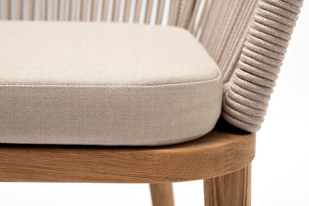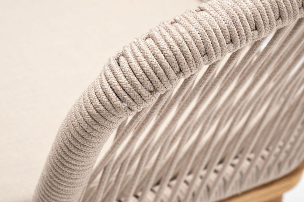 Стул "Марсель" предназначен для организации обеденной зоны или зону лаунж. Каркас выполнен из натурального дерева. Оплетка - современный материал "роуп", которым каркас оплетался вручную. Роуп - это эластичные синтетические ленты, изготовленные из высокопрочных полиэфирных волокон. Цвет оплетки - бежевый.