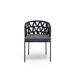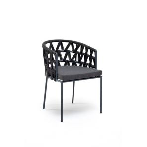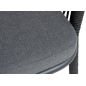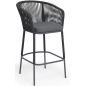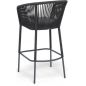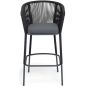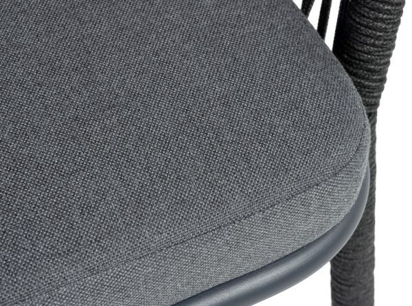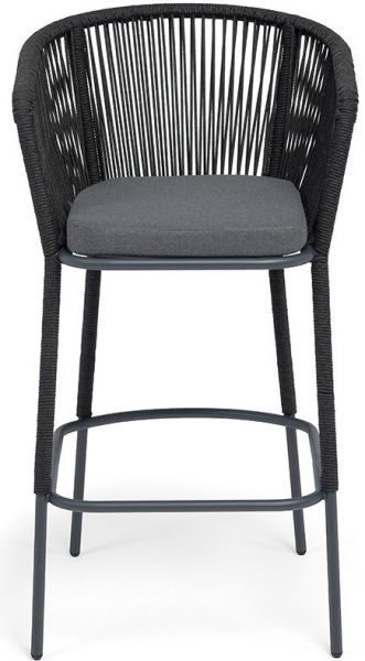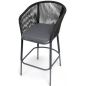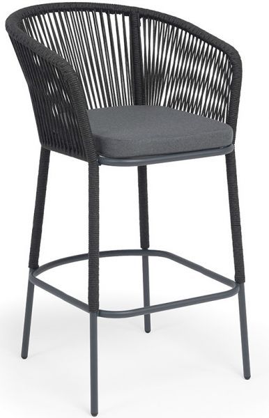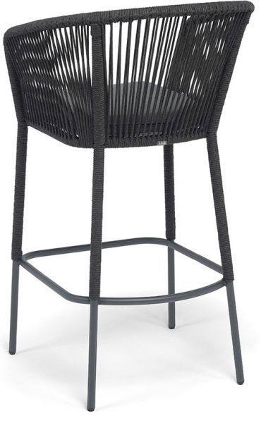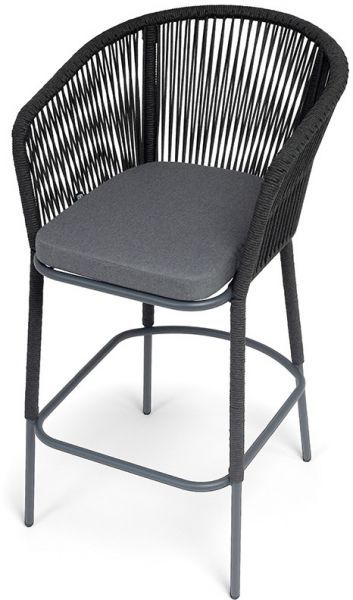 Барный стул «Марсель» представлен в стальном каркасе темно-серого (RAL7024) цвета, оплетен вручную эластичными синтетическими лентами из высокопрочных полиэфирных волокон, темно-серого оттенка, размер стула: 590×705×1070 мм. В комплекте одна подушка со съёмным чехлом с влагоотталкивающей пропиткой темно-серого цвета. Чехол можно стирать в стиральной машине с использованием порошков.