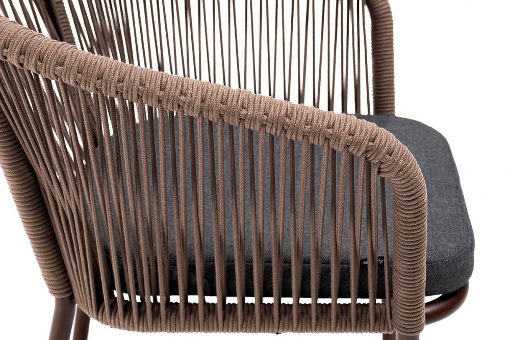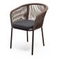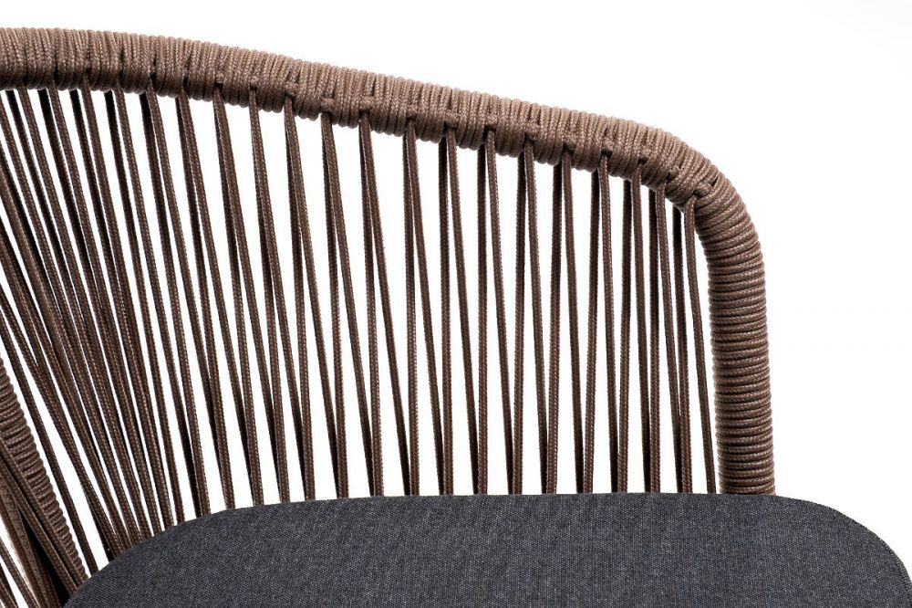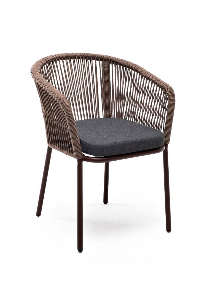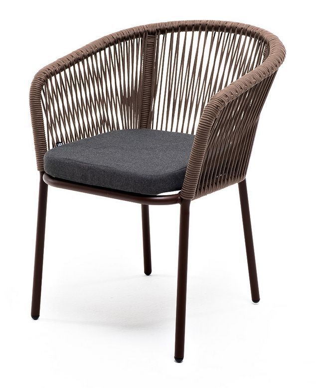 Стул "Марсель" предназначен для организации обеденной зоны или зону лаунж. Выполнен из алюминиевого каркаса коричневого (RAL8016) цвета. Оплетка - современный материал "роуп", которым каркас оплетался вручную. Роуп - это эластичные синтетические ленты, изготовленные из высокопрочных полиэфирных волокон. Цвет оплетки - коричневый.