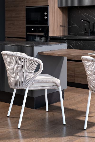 Стул плетеный из роупа 4SIS «Милан» каркас алюминий белый шагрень, роуп бежевый круглый