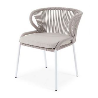 Стул "Милан" для обустройства обеденной или лаунж-зоны. Изготовлен из алюминиевого каркаса, оплетенного вручную эластичными синтетическими лентами из высокопрочных полиэфирных волокон (роуп круглый). Цвет каркаса - бежевый (RAL1001), оплетки - бежевый.