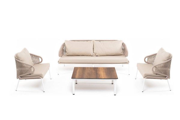 Лаунж-зона 4SIS "Милан" пятиместная, каркас белый, роуп бежевый