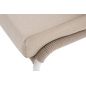 Каркас уличной мебели выполнен из износостойкого алюминия. Его дополняет бежевая ручная оплетка, изготовленная на основе эластичных синтетических лент из полиэфирных волокон высокой прочности (роупа).