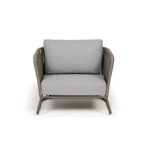 Кресло «Ницца» предназначено для комфортного времяпровождения в зоне отдыха с диванами и столиком из этой же серии. Каркас мебели сделан из прочного алюминия с высокими эксплуатационными качествами. Оплетен вручную с помощью круглого искусственного ротанга. Представлено в сером оттенке. Садовое кресло укомплектовано удобными бежевыми подушками. Полиэстер используется при пошиве тканевых изделий, плотность которого - 300гр/м2. Материал имеет обязательную влагоотталкивающую пропитку для усиления его защитных свойств.