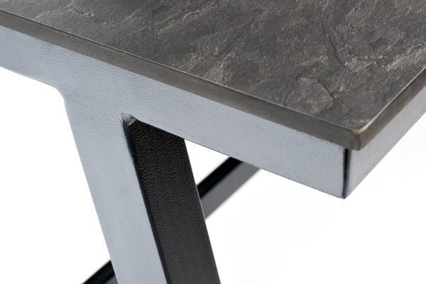 Стол "Рио" подходит для организации столовой зоны в помещении или на открытом пространстве. Столешница изготовлена из компакт-пластика HPL c рисунком цвета "серый гранит". Основание стола - металлическое, укреплено специальными прочными фиксаторами, которые не позволяют поверхности деформироваться.