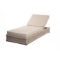 Спинка шезлонга обладает четырьмя уровнями наклона. Ширина составляет 77 см, длина 202 см и 33 см в высоту. Завершающим элементом данной модели, являются мягкие подушки из высококачественного полиэстера с влагоотталкивающей пропиткой.