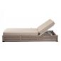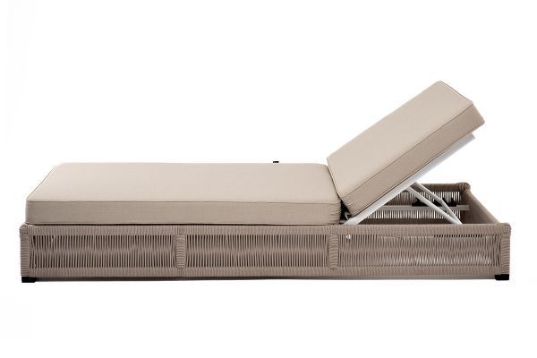 Спинка шезлонга обладает четырьмя уровнями наклона. Ширина составляет 77 см, длина 202 см и 33 см в высоту. Завершающим элементом данной модели, являются мягкие подушки из высококачественного полиэстера с влагоотталкивающей пропиткой.