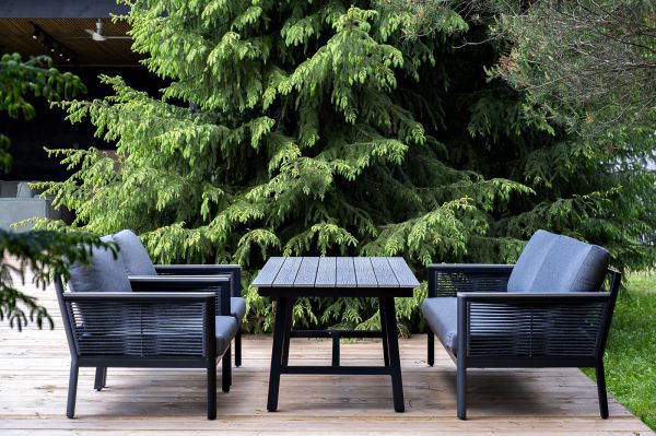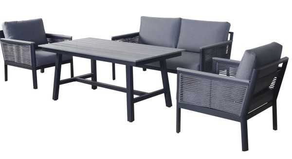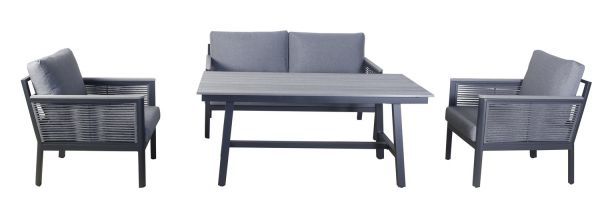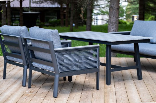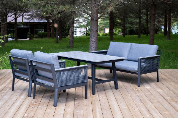 «Сан Ремо» лаунж-зона, алюминиевый каркас серый цвета, вручную оплетенный роупом серого цвета.