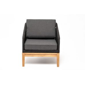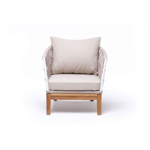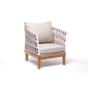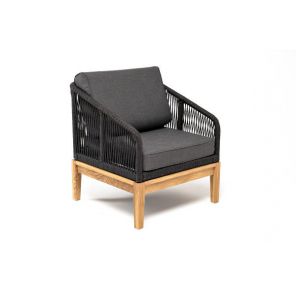 Кресло оснащено каркасом из прочного алюминия, ручное круглое плетение является основным декоративным элементом мебели. Оно выполнено из искусственного ротанга в бронзовом цвете.