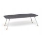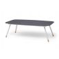 Каркас столика изготовлен из алюминия, окрашенного в светло-серый цвет. Алюминий является легким и прочным материалом, что обеспечивает долговечность и надежность изделия. На ножках столика идут дубовые наконечники (заглушки).