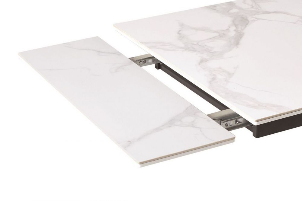 Стол оснащен раздвижным механизмом с обеих сторон, что позволяет легко и быстро превратить стол в пространство для большой компании. Размер стола в сложенном виде составляет 160×90×76 см, в разложенном - 220×90×76 см.