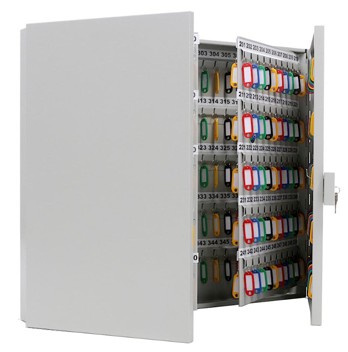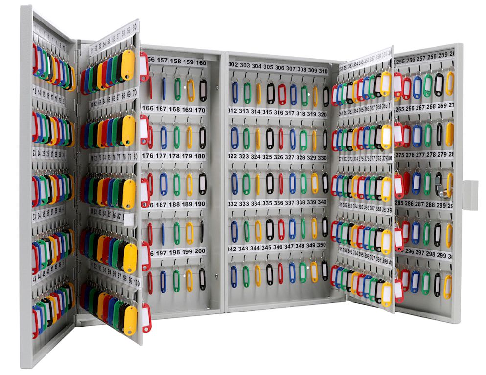 KEY-400 — металлическая настенная ключница для упорядоченного хранения до 400 ключей, предотвращения доступа к ним посторонних лиц.