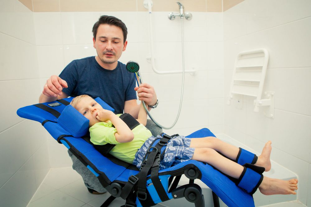 Лежанка для ванны Акволито для детей с ДЦП и детей инвалидов – это простое и удобное решение, которое помогает при уходе за людьми с ограниченными возможностями. Лежанка выполнена из алюминия, с защитой от воздействия воды. Трубки рамы, которая соприкасается с ванной, покрыты мягкой оболочкой, что предотвращает скольжение. Уникальная конструкция рамы позволяет регулировать угол наклона подножки и спинки, а также высоту и угол наклона сидения. Это позволяет максимально приспособить лежанку, под индивидуальные особенности и нужны пациента. Рекомендуется для детей, подростков и взрослых с диагнозом: Дегенерация, деформации конечностей или повреждения суставов; Гемиплеги; Параплегия (обычно — нижних конечностей); Двусторонний паралич, парез; Квадриплегия, тетрапарез (охватывающая весь организм (голова, туловище и конечности)).