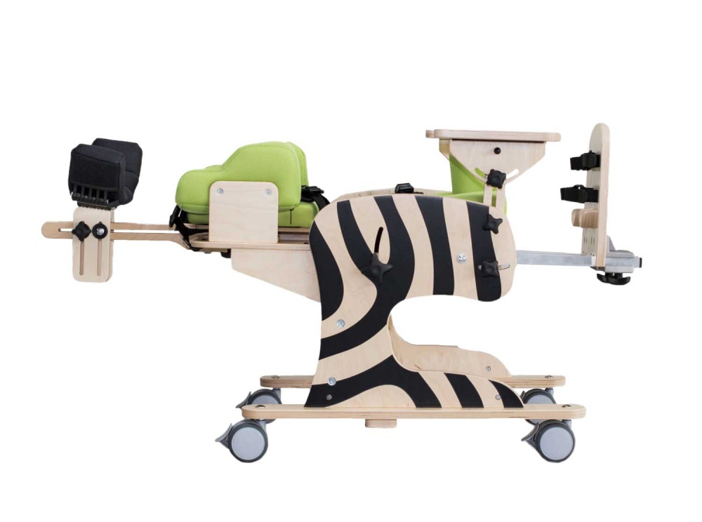 Реабилитационное кресло ЗЕБРА предназначено для детей и подростков с серьезным дефицитом двигательной системы, которые не научились сидеть или имеют значительные трудности в принятии сидячего положения. Оно подходит для реабилитации детей с пониженным мышечным тонусом, а также для детей со значительной спастичностью. Кресло будет полезно при ортопедических заболеваниях или после хирургических операций у детей с требованием длительного уменьшения нагрузки на одну или обе нижние конечности. Улучшает комфорт повседневной жизни ребенка и его семьи. Продукт изготовлен из экологической древесины, безопасных материалов, а раскраска – полностью ручной работы. Жилет безопасности и бедренный ремень имеют инновационные защелки «возьми и потяни»©, позволяющие очень быстро и надежно обезопасить ребенка в устройстве.