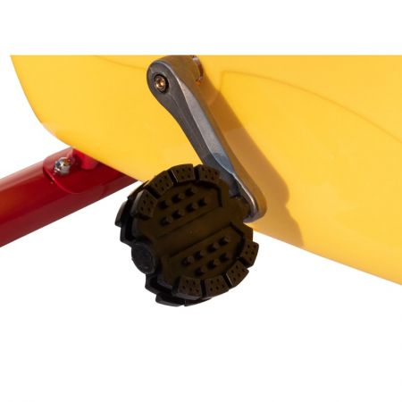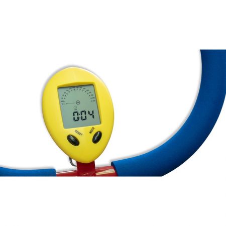 Зато детский велотренажер оборудован маленьким компьютером на батарейках АА, который точно так же, как и на взрослых моделях, показывает скорость, время тренировки и пройденную дистанцию.