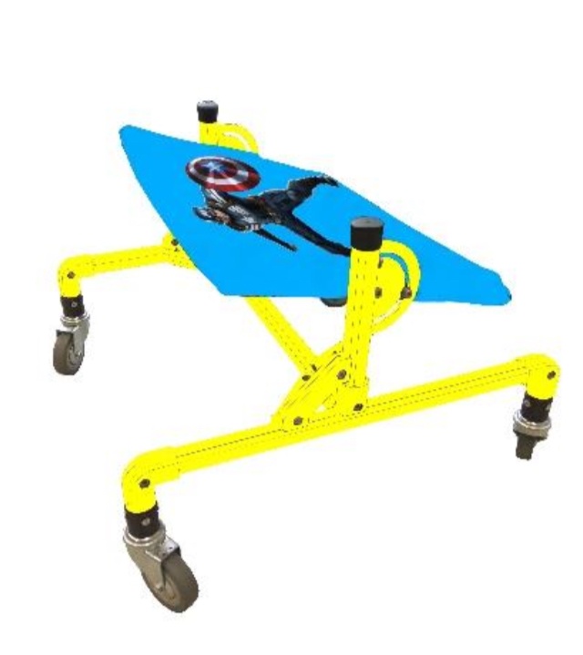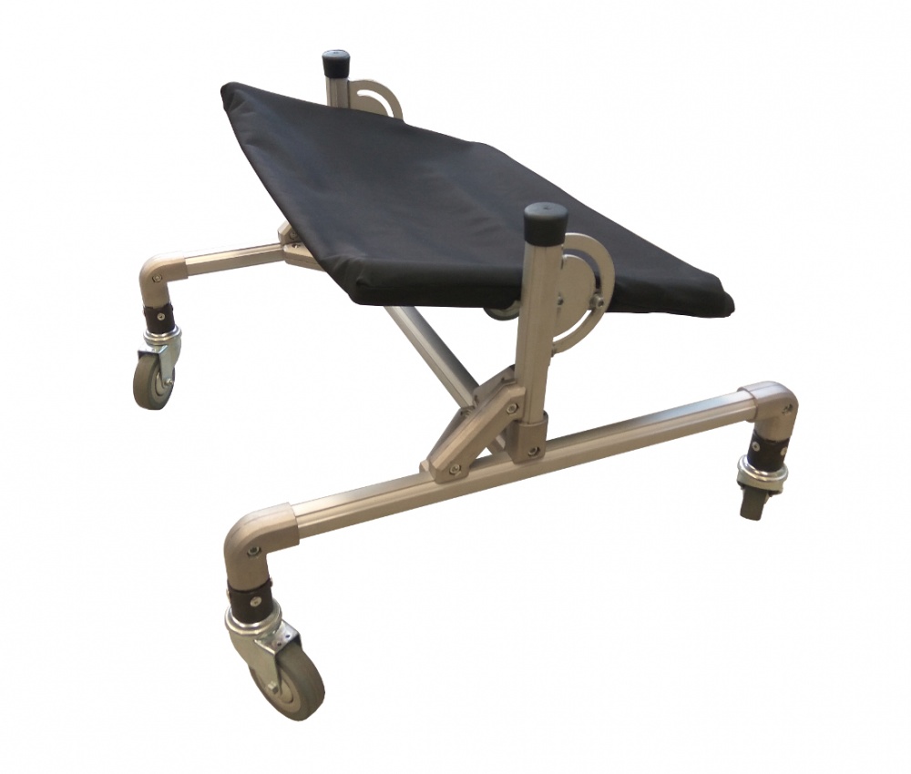 Опора представляет собой конструкцию, собранную из трубного алюминиевого профиля на самоориентирующихся колесах с ложем для ребенка.
