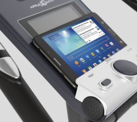 За показатели пульса отвечают вмонтированные в рукоятки сенсорные датчики пульса. Велотренажер удобно перемещать благодаря двум транспортировочным роликам, а точное горизонтальное положение обеспечивают компенсаторы неровностей пола. Черно-белый LCD-дисплей диагональю 14 см одновременно выводит на экран различные параметры тренировки - время, дистанцию, скорость, калории, одометр и пульс. На подставку консоли можно поставить планшет или смартфон - это хороший способ справиться с однообразием тренировок. Конструкция рамы рассчитана на комфортную тренировку пользователей ростом до 190 см и весом до 130 кг.