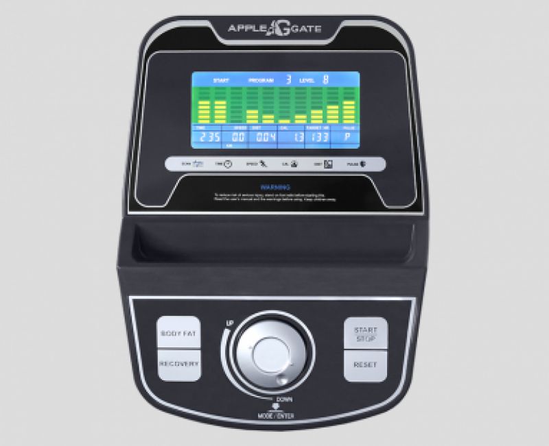 Тренировочный компьютер представлен цветным LCD-дисплеем диагональю 14 см с профилем тренировки. В программный пакет входят 7 предустановленных программ, направленных на тренировку скоростных качеств, выносливости, укрепления сердечно-сосудистой системы и похудания. Помимо этого, можно воспользоваться самостоятельно регулируемым ручным режимом, а также создать собственную программу.