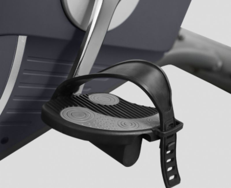 Рифленые антискользящие педали с прорезиненными многопозиционными ремешками обеспечивают надежное сцепление на любых скоростях педалирования. Здесь также есть такие опции как транспортировочные ролики и компенсаторы неровностей пола.