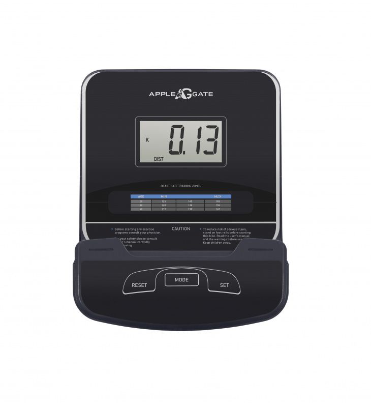 Компьютер представлен голубым LCD-дисплеем диагональю 9 см. Тренажер оснащен транспортировочными роликами и компенсаторами неровностей пола.