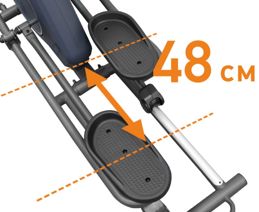 Электромагнитный эллиптический тренажер AppleGate X42 A с передним приводом для домашнего использования. Электромагнитная система нагружения по технологии bio-Flow Front+ обеспечивает биомеханически правильное педалирование и корректное распределение нагрузки по всей траектории движения. Длина шага составляет 48 см. Это достаточная величина для начинающих и продвинутых пользователей ростом до 195 см. Расстояние между педалями равно 9 см.
