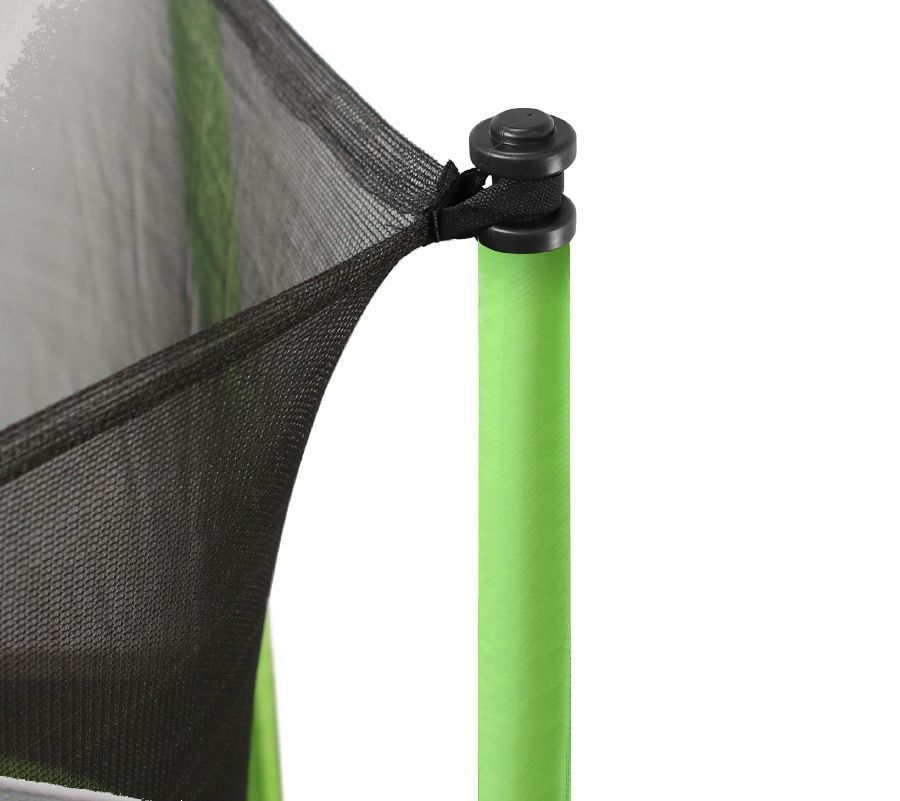 Построенные на основе высокопрочной стальной рамы, батуты рассчитаны на долгие часы прыжков. За соединение всех стальных элементов, обеспечивающих надежность конструкции, отвечает система T-Shaped Component™. Устойчивость на поверхности гарантируют 3 опорные стойки W-образной формы. Оборудование выдерживает вес пользователя до 100 кг. Зона прыжковой поверхности в модели составляет 6 футов (1,83 м). На батуте 6FT с внутренней страховочной сеткой (Light green) используется легендарный полипропилен Permatron™, который является самым прочным материалом для прыжковой поверхности. Верхние стойки, в количестве 6 штук, оплетены чехлами из PE-материала. На верхней части стойки установлены специальные держатели. Они являются составной частью системы натяжения сетки и крепятся при помощи простого нажатия кнопки Smart Push™. По окружности рабочей зоны на стойки натянута прочная внутренняя защитная сетка высотой 154 см. В комплекте с батутом предусмотрена лестница длиной 76 см для удобного подъема. Батуты легко собираются своими силами.