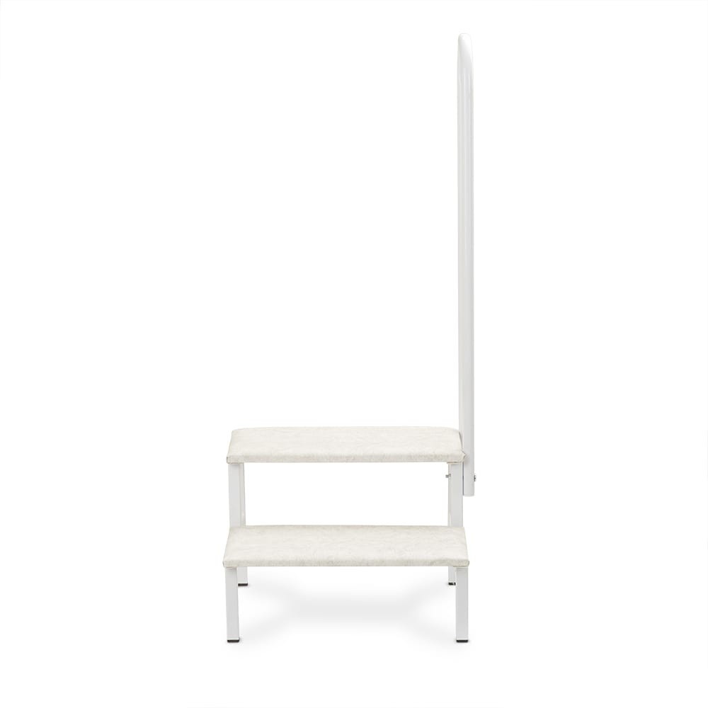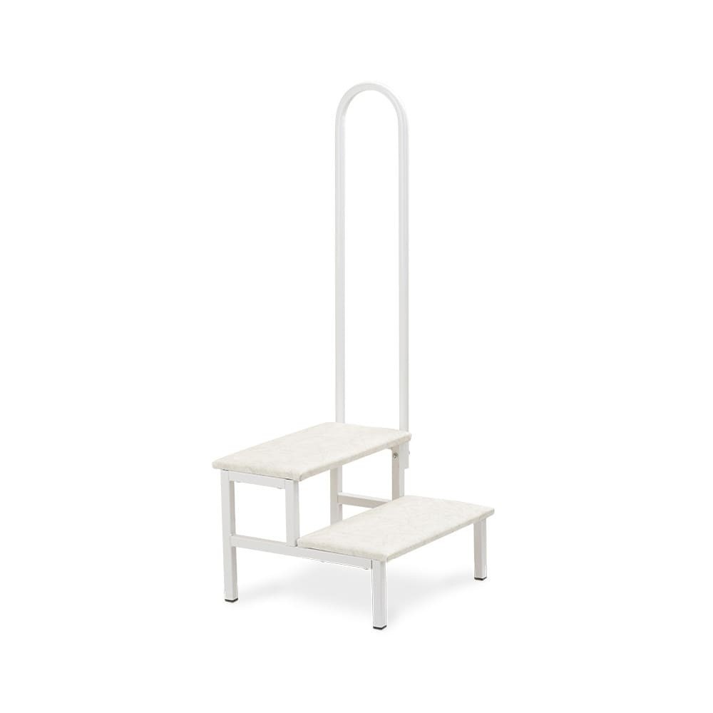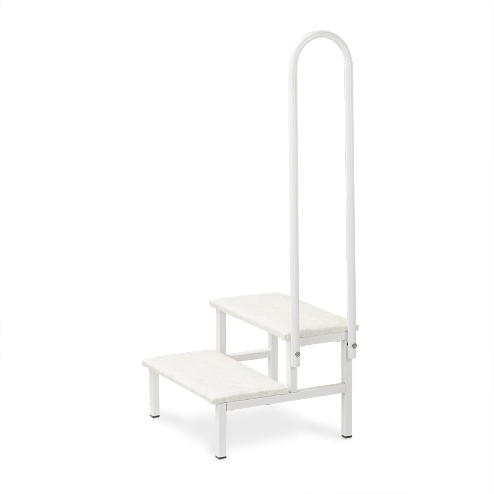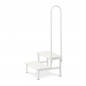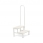 Ступень с поручнем предназначена для ухода за больными в условиях стационара или в домашних условиях. Изделие выполнено из качественных материалов, поэтому ступень может выдерживать нагрузку из 120 кг. Приспособление состоит из двух ступеней и оснащается специальным поручнем – благодаря такой конструкции, пользователю облегчается вход в ванну или душевую кабину. Каркас выполнен из металлического сплава и имеет специальную обработку от возникновения коррозийных процессов. Ступени обиты винилскожей, устойчивой к влаге и повреждениям. Для дополнительной устойчивости и защиты напольного покрытия имеются пластиковые заглушки, которые при необходимости легко сменить.