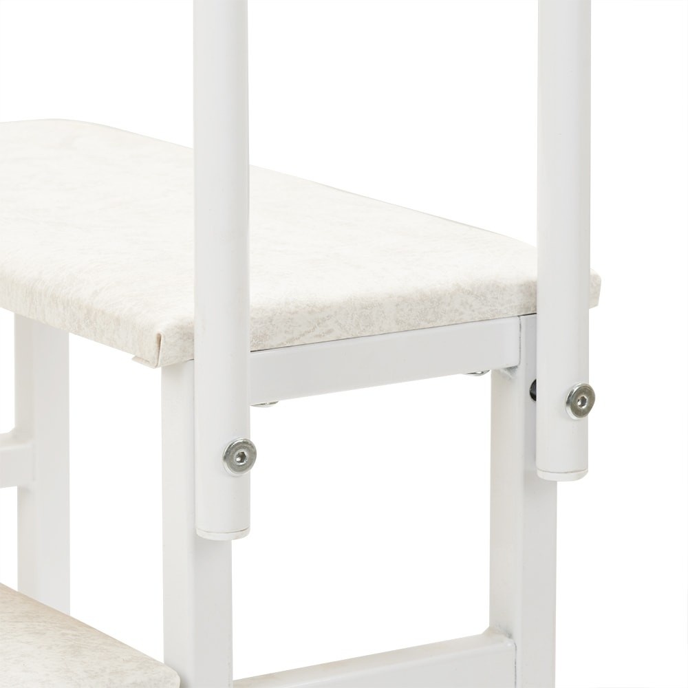 Достоинства: Правильный размер конструкции: высота и ширина ступеней, длина и диаметр поручня, всё ок, то, что нужно. Покрытие ступеней тоже норм. Ножки не сильно скользят по паркету.