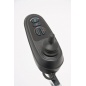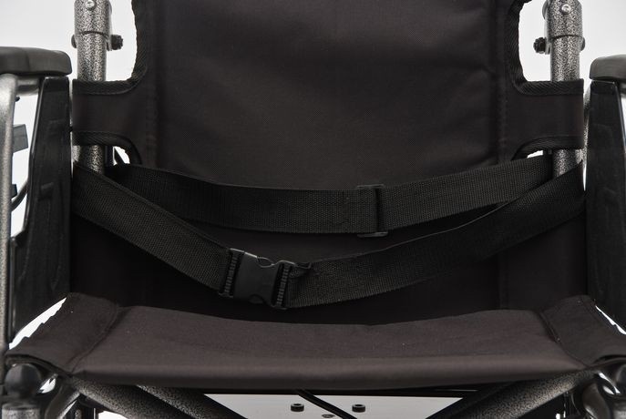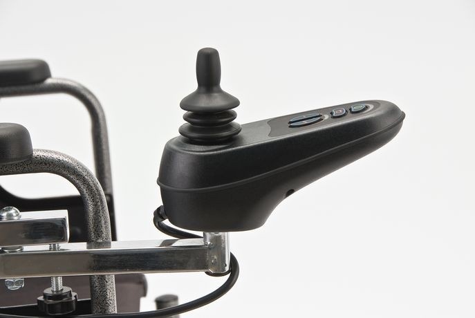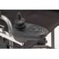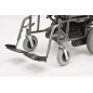 Благодаря наличию рычагов, электромотор можно переключить на ручной ход. Подлокотники откидываются назад и способствуют комфортной посадки пациента. Ножные опоры поворотные, вращающиеся опоры для стоп полностью отсоединяются. Единая тканевая лента удерживает голень.