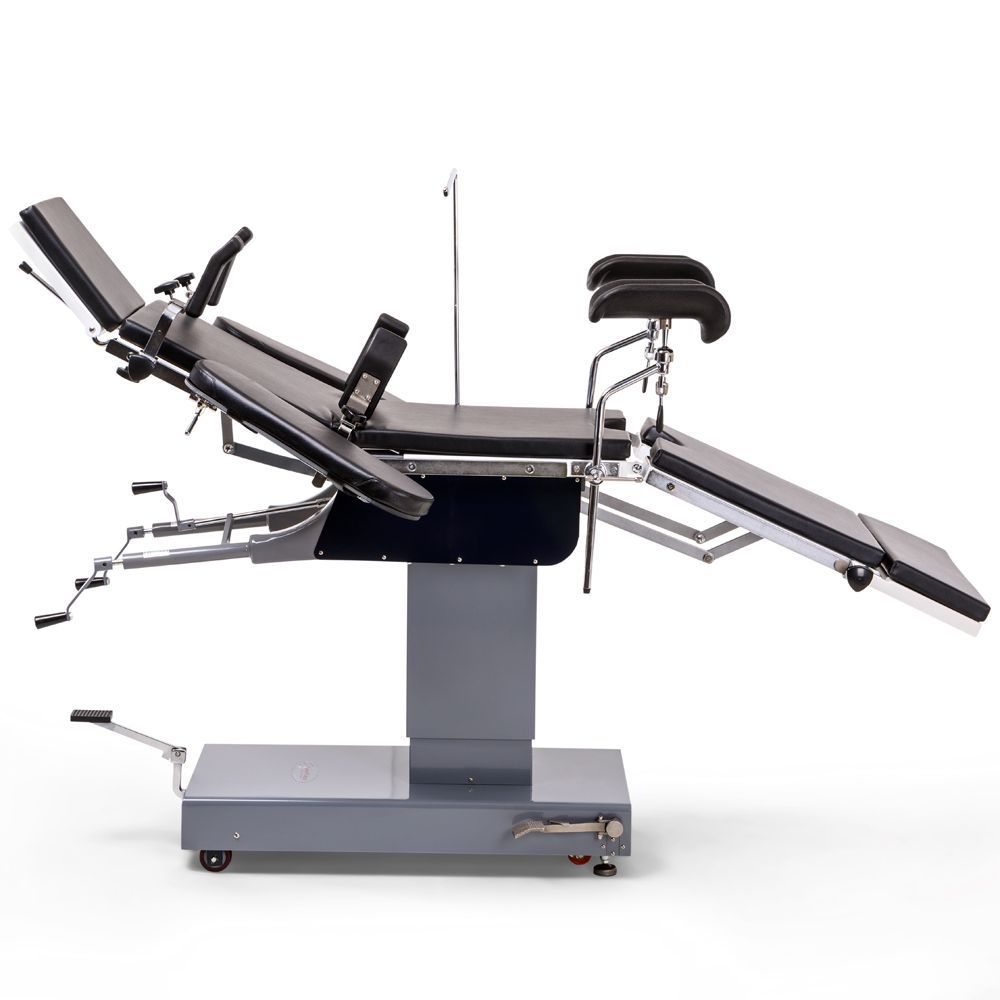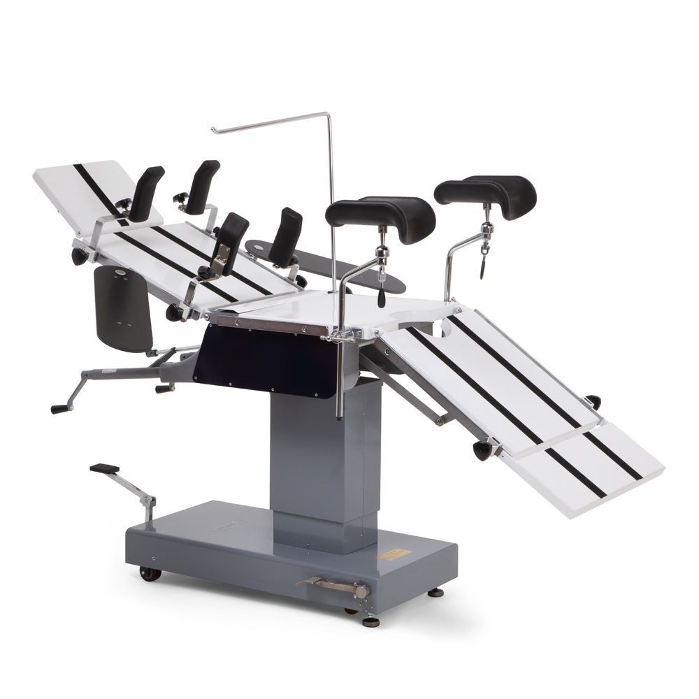 Медицинский стол Armed ST-III используется при проведении операций и осмотров в различных областях медицины. Его оснащение позволяет проводить гинекологические, урологические, хирургические, офтальмологические и другие процедуры. Стальное основание стола оснащено педальным механизмом для поднятия ложа. Ложе разделено на несколько секций, положение которых меняется механическими регуляторами. Угол наклона подголовника, опор для ног и спины регулируется в зависимости от характера проведения манипуляций.