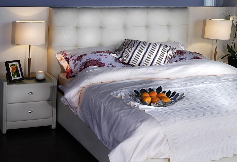 Подъемный механизм в кровати Askona AmeLia Vogue очень удобен – он экономит место в ванной комнате. По своей вместительности – это двуспальная модель, которая оснащена ящиками для хранения постельного белья, одеяло, пледов и других вещей. Таким образом совмещаются две задачи, которые выполняет мебель и шкаф в спальной комнате. Это очень удобно и практично. В процессе производства двуспальной кровати используются металлический каркас, натуральные древесные материала и износостойкая искусственная кожа для обивки. Модель оснащена высоким изголовьем, которое украшено изысканным декором, привлекающим к себе внимание.