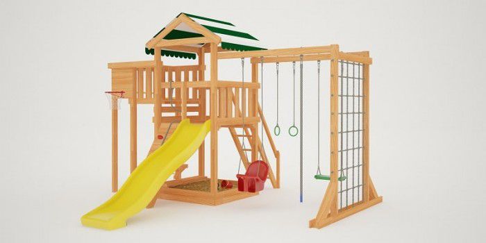 Недостатки: Комментарий: сборка казалась нам сложной, но в итоге все сделали быстро, все комплектующие были в комплекте. Дети и даже взрослые в восторге от такой детской площадки.