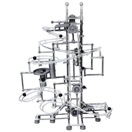 Собранный конструктор, это завораживающая конструкция, по которой без остановок двигаются цветные шарики. Вы всей семьей сможете создать домашнюю модель вечного двигателя, по которому шарики один за другим находятся постоянно в движении - поднимаются лебедкой, спускаются вниз по подвесным рельсам. Это забавное зрелище положительно влияет на нервную систему, а сам процесс создания домашнего "вечного двигателя" научит ребенка логически и пространственно мыслить, концентрировать внимание и доставит массу удовольствия. Вы можете не следовать инструкции, проявить фантазию и создать свою неповторимую модель.