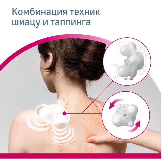 В основу работы массажера заложены комбинация массажа Шиацу и Таппинг. Попеременное давление ладонями и большими пальцами руки с легким надавливанием на акупунктурные точки помогает эффективно бороться с солевыми отложениями, снимает напряжение мышц и спазмы, улучшает кровоток, помогает при усталости и стрессе, улучшает иммунитет. Массажер поможет восстановить силы дома и на работе.