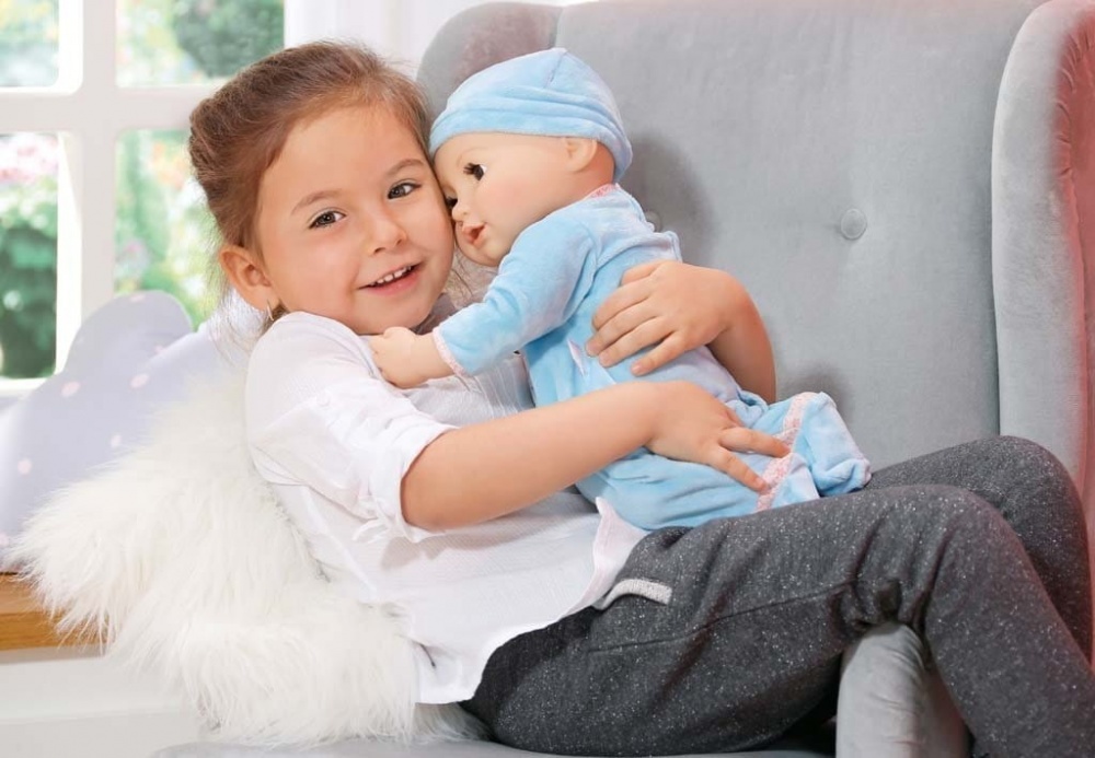 Кукла имеет огромное количество датчиков, реагирующих на укачивание либо кормление. Покормить куклу можно будет при помощи миниатюрной бутылочки. Пустышка, звонкая игрушка, слюнявчик и другие аксессуары делают игру максимально приближенной к реальности. Кукла может попроситься на горшок.