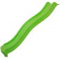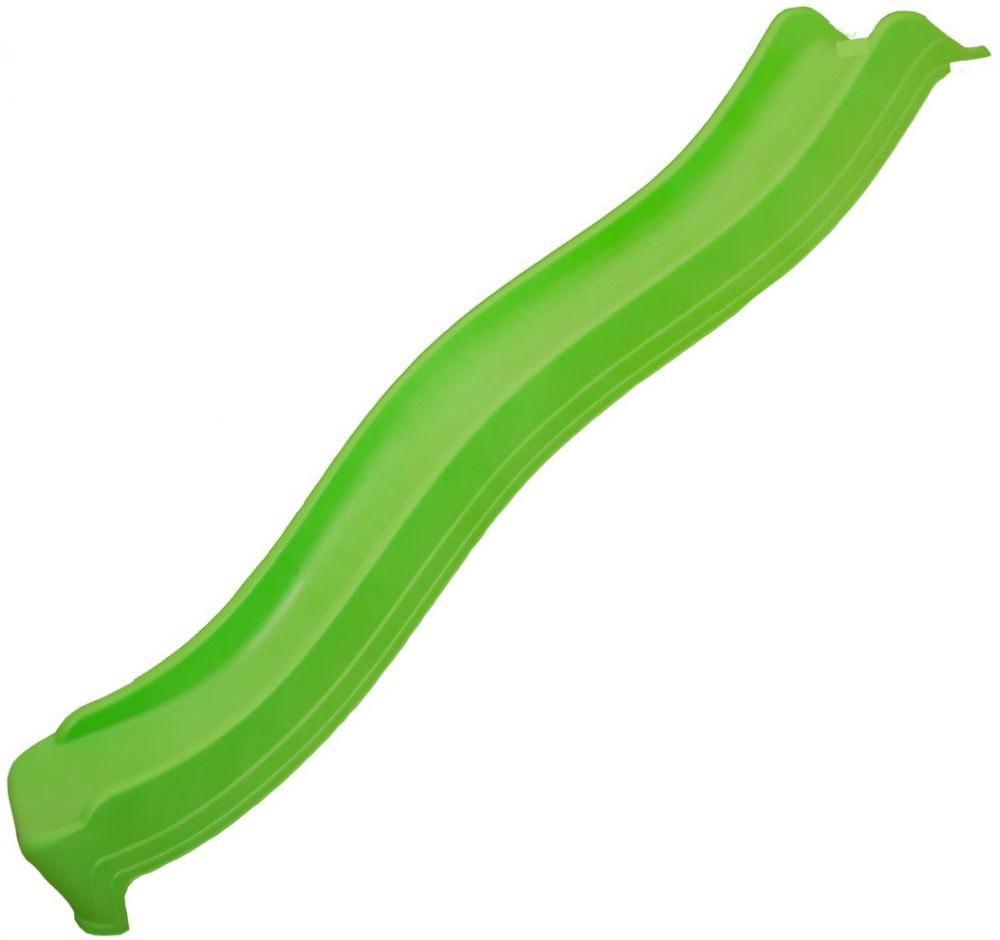 Светло-зеленая горка сделана из экологически безопасного пластика, металлические элементы – из высокопрочной оцинкованной стали. Есть возможность подключения водяного шланга через форсунку.