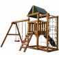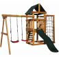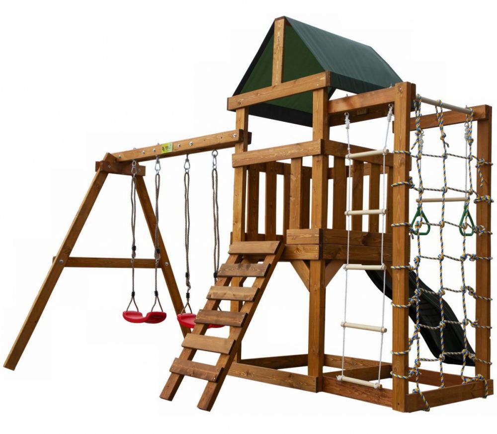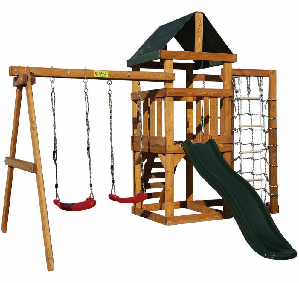Игровая площадка изготовлена из хвойной древесины северных пород, обработана гипоаллергенным покрытием на водной основе (не содержит токсичных растворителей). Навесное и игровое оборудование сделано из экологически безопасного пластика, металлические элементы из высокопрочной оцинкованной стали.