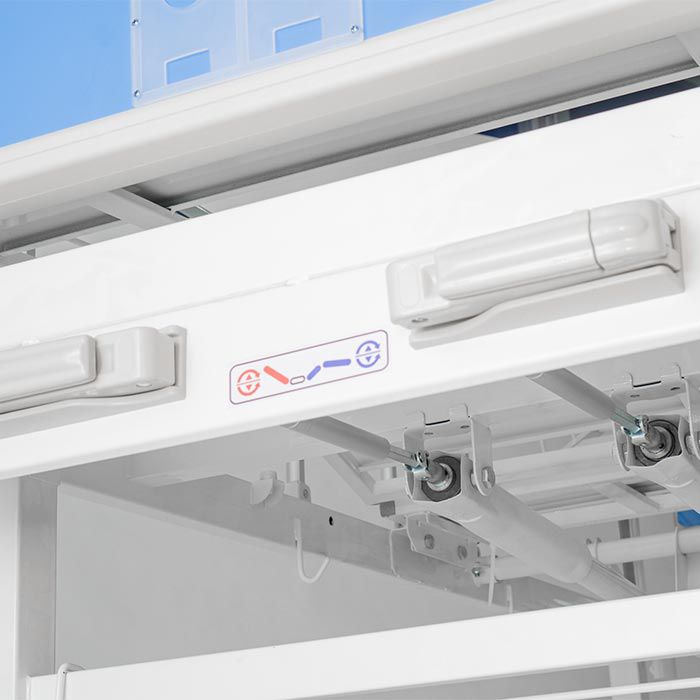 Панели изголовья и изножья изготовлены из высококачественного ударопрочного пластика ABS. Глянцевая поверхность позволяет быстро и эффективно проводить дезинфекцию. Панели легко снимаются, что позволяет персоналу легче выполнять специальные медицинские и реанимационные процедуры.