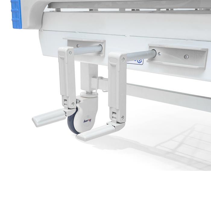 Кровать имеет две ручки управления для регулировки углов наклона спинной и тазобедренной секций. Основа рама кровати изготовлена из стали и покрыта высококачественным порошковым покрытием, что обеспечивает качественную и долгосрочную защиту от внешних воздействий, а также устойчивость к дезинфицирующим средствам.