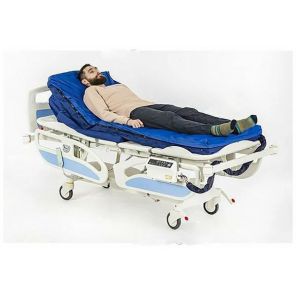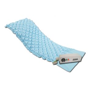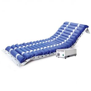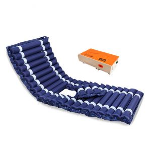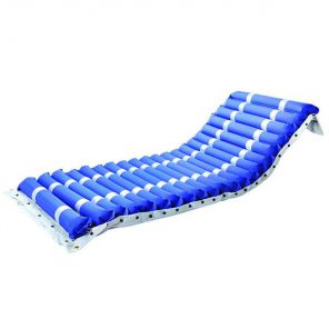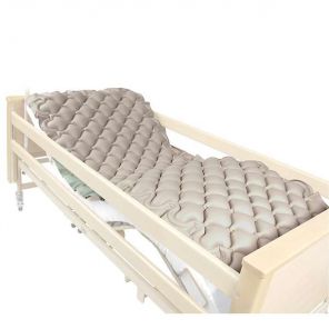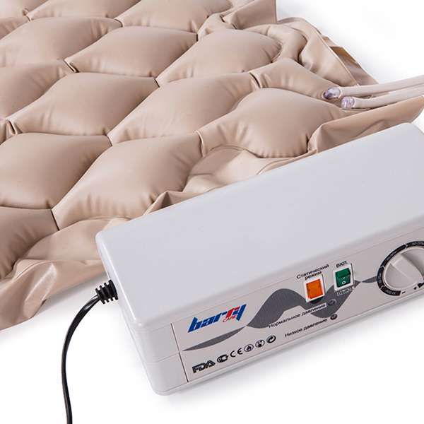 Система представлена матрасом с куполообразными ячейками и компрессором для нагнетания воздуха. Попеременная подача воздуха в ячейки обеспечивает постоянную смену опорных точек, изменение давления на прилежащие ткани.