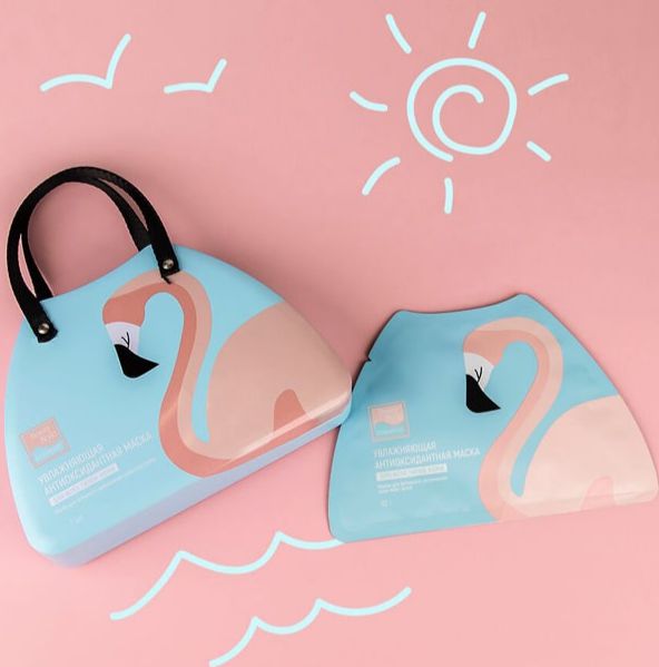 Увлажняющая антиоксидантная маска Lovely Care "Фламинго" на тонкой нетканой основе в форме лица, в концентрированном растворе растительных экстрактов, предназначена для активного увлажнения кожи всех типов.