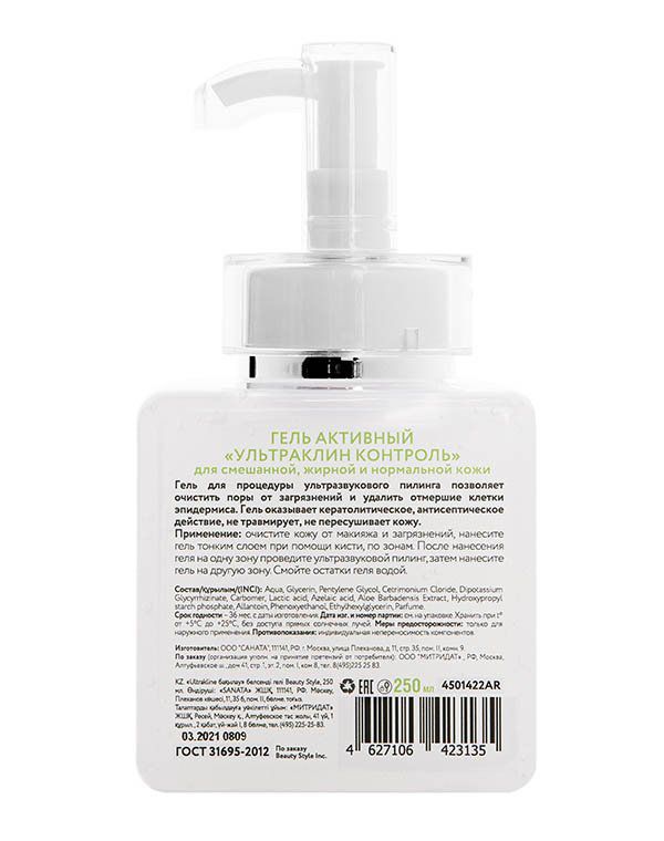 Гель для УЗ чистки лица Beauty Style "Ультраклин контроль" 250 мл