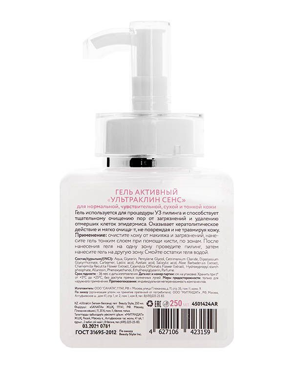 Специальный гель для бережной чистки чувствительной, сухой, тонкой и нормальной кожи, используется для процедуры УЗ пилинга, тщательно очищает поры от загрязнений и удаляет отмершие клетки эпидермиса.