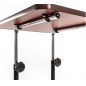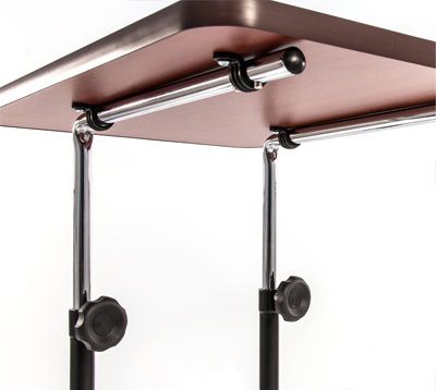 Имеются колёсики для транспортировки. Изделие способно выдерживать вес до 15 кг. Удобно, что конструкция стола регулируется по высоте, что позволяет настроить её для максимального комфорта пациента в процессе принятия пиши, письма, чтения или рукоделия.