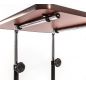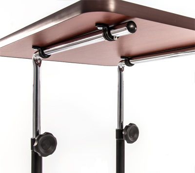 Столик можно регулировать по высоте, менять наклон столешницы для большего удобства. Конструкция имеет 4 колеса, поэтому легко перемещается по полу, при необходимости ее можно без проблем отодвинуть, чтобы приблизиться к пациенту. Стол одинаково хорошо подойдет для больницы или для дома. Конструкция столика рассчитана на его применение над кроватью. Нижняя часть основания заходит под кровать, а верхняя часть со столешницей располагается над лежащим на кровати. Столик можно отрегулировать по высоте и углу наклона столешницы с помощью винтов на опорных ногах конструкции.