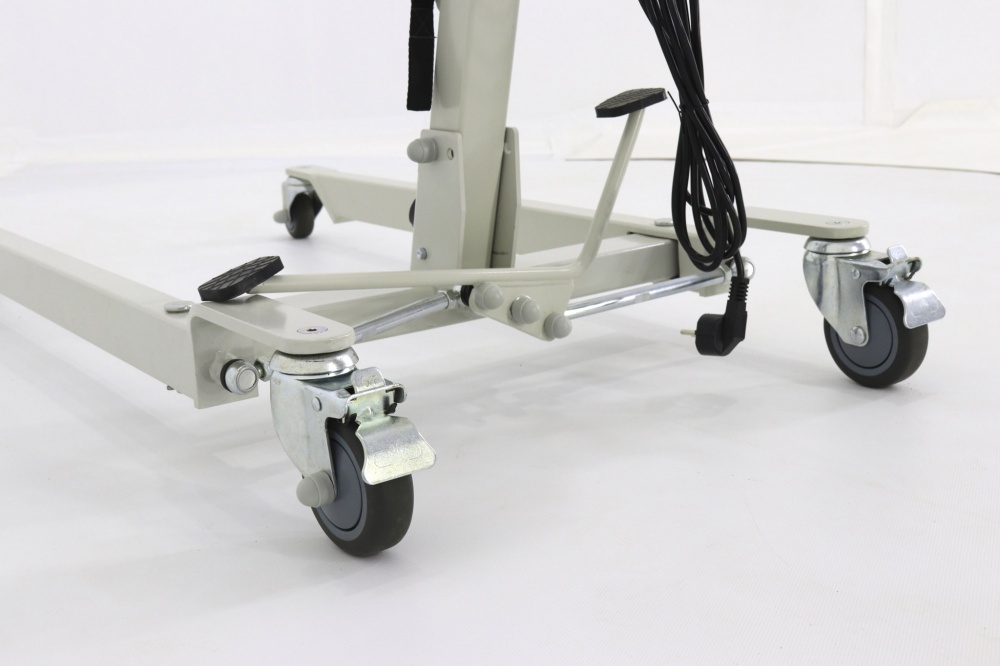 С таким подъемником все делается намного быстрее. У многих, за кем ухаживаю, есть подъемники. И с этой моделью работала. По всей квартире перемещается без проблем, проходит в двери, по разному покрытию едет хорошо. Механизм совсем простой, можно освоить за полчаса. Если нужно, чтобы стоял на месте, колеса фиксируются. Ничего лишнего и удобен если нужно какие-то процедуры сделать, которыми неудобно заниматься, когда человек в коляске или кровати. На весу держит человека ровно и не шатается.