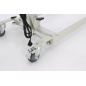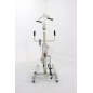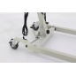 В качестве основного материала изготовления каркаса выступает металл, поэтому устройство выдерживает довольно большой вес – 150 кг. Для перемещения подъемника по помещению имеются колеса, а комфортное использование приспособления обеспечивает возможность индивидуальной регулировки длины и ширины конструкции.