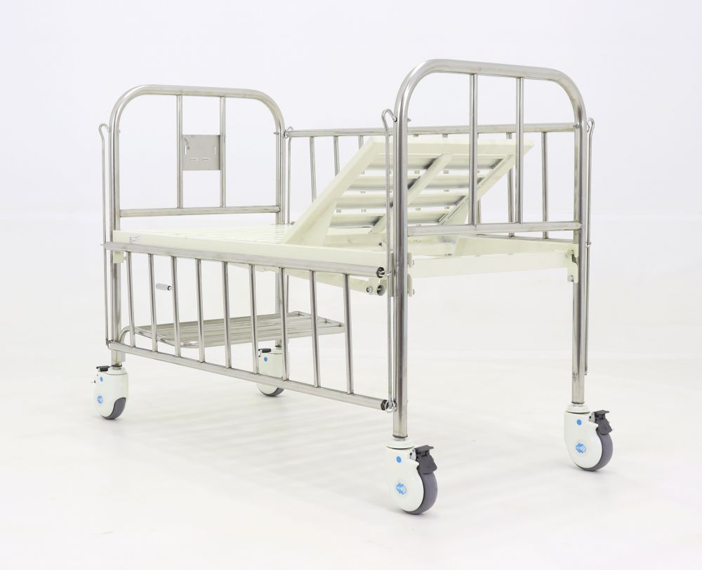 Кровать предназначена для педиатрических отделений и использования дома. Удобные подъемные бортики исключают падение пациента во время сна и медицинских процедур. Функция подъема головы обеспечит больному комфортное бодрствование, прием пищи.