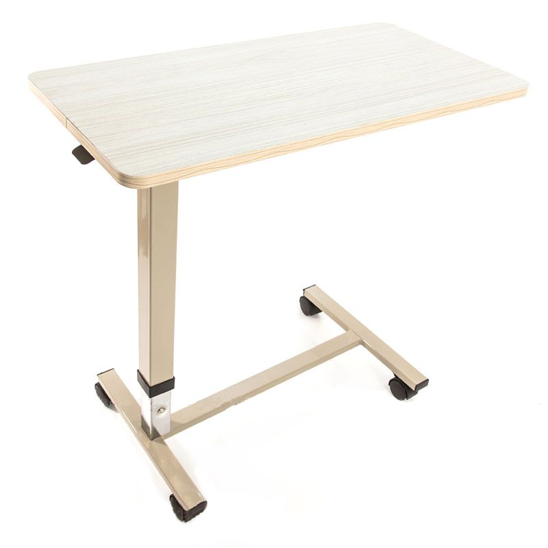 Классический прикроватный столик для лежачих больных, основание которого размещается под кроватью. Столешница оказывается прямо перед пациентом, и тот может пользоваться ей, не вставая. Подобное решение облегчит прием пищи, общий быт больного, а также работу медицинского персонала.