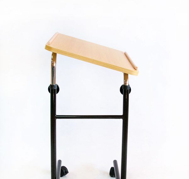 Столешница регулируется по высоте, а также может менять угол наклона с помощью двух затяжных винтов. Сам механизм не очень практичный и удобный: пользователь не сможет самостоятельно изменить настройки подставки. Конструкция столика рассчитана на его применение над кроватью. Нижняя часть основания заходит под кровать, а верхняя часть со столешницей располагается над лежащим на кровати. Столик регулируется по высоте. Столешница допускает влажную дезинфекцию и местный нагрев.